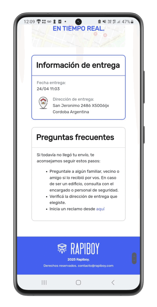 • Carga de comprobantes de entrega, detalles e incidencias.
